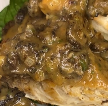 Plate the lion's mane steaks with biscuits and pour the gravy all over those babies.