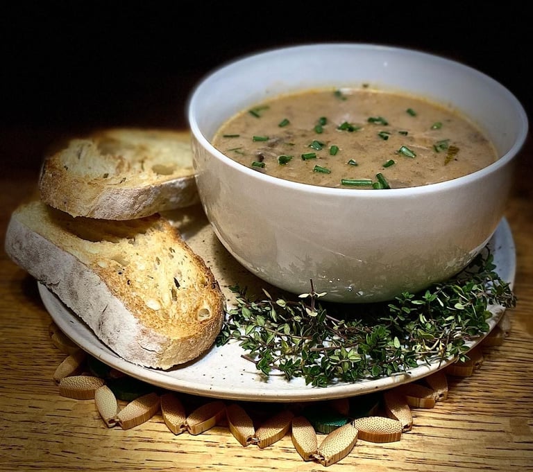 Delicious and creamy mushroom medley soup made with stinging nettle herb.