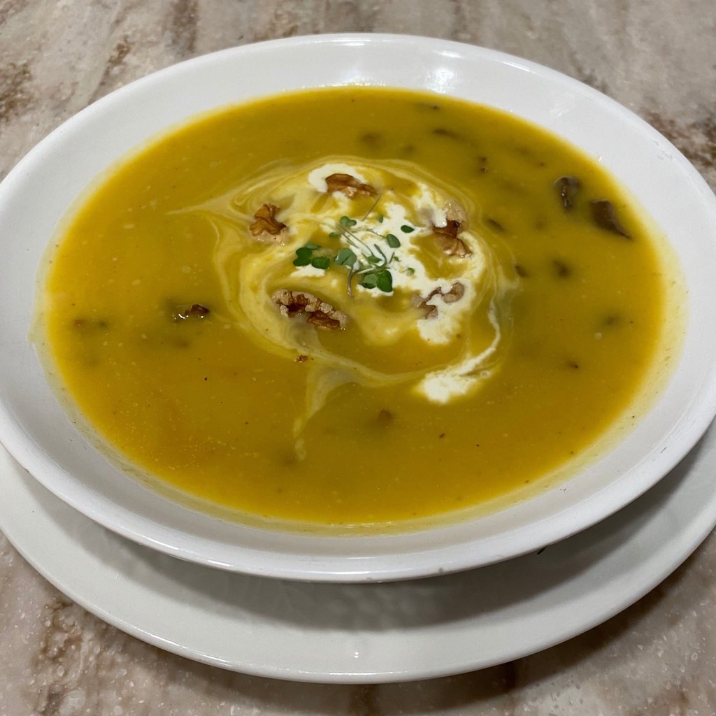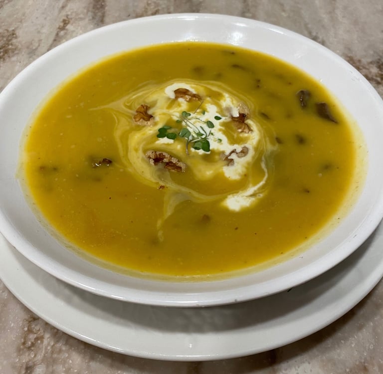 Fall/Winter Squash Bisque with Chestnut Mushrooms