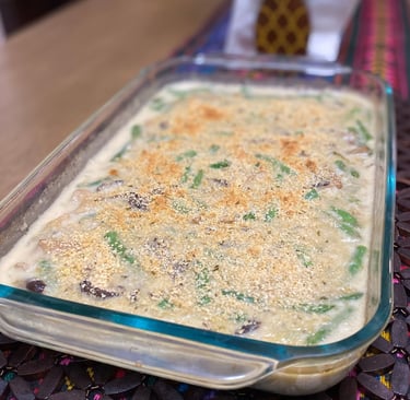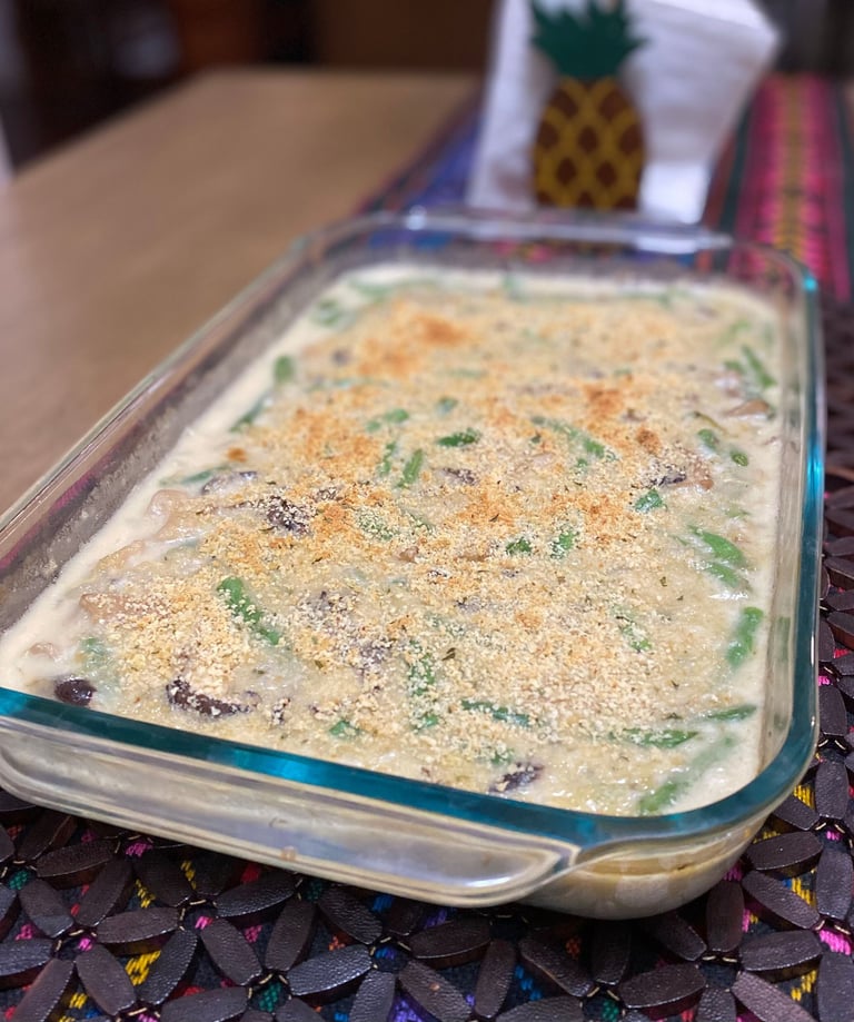 A holiday staple and family favorite enhanced with an earthier, thicker, southern-gravy-style cream of mushroom soup