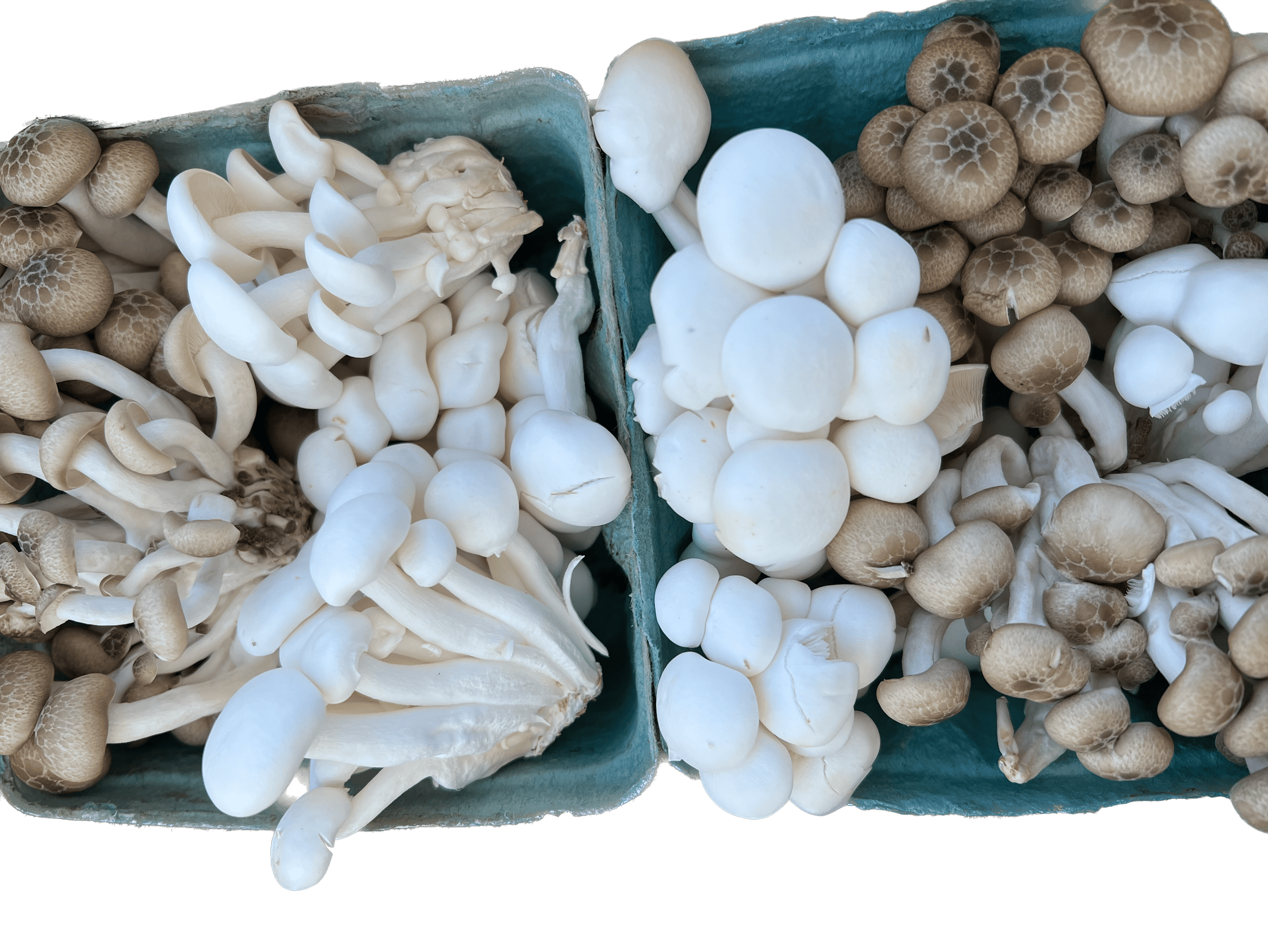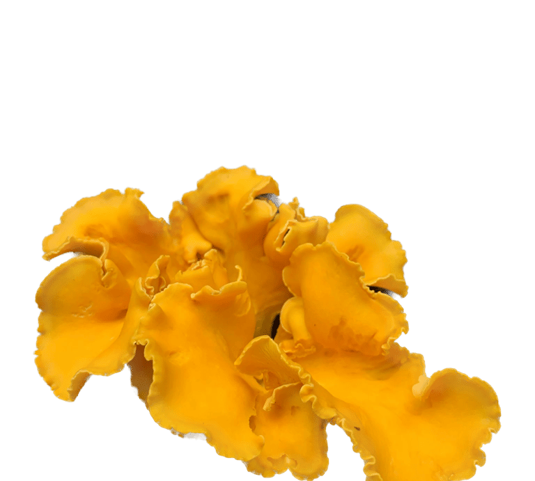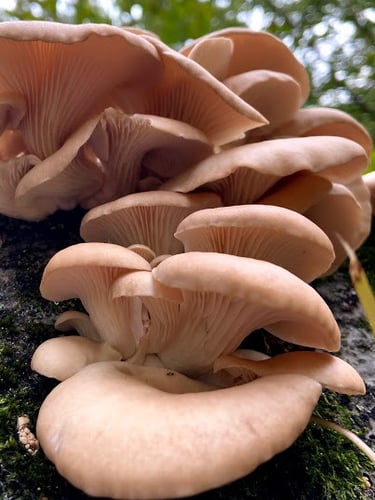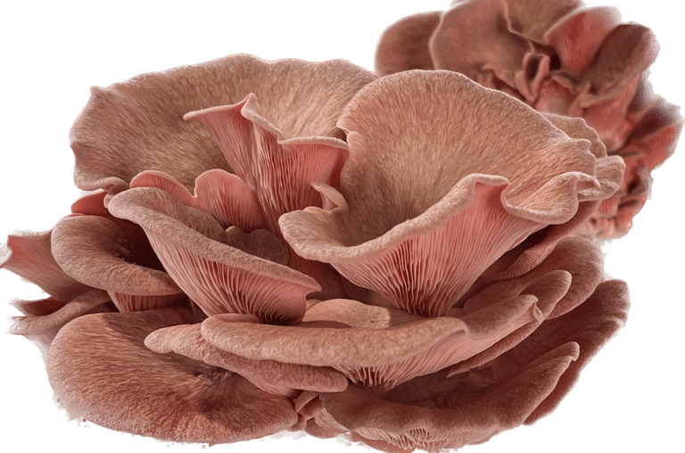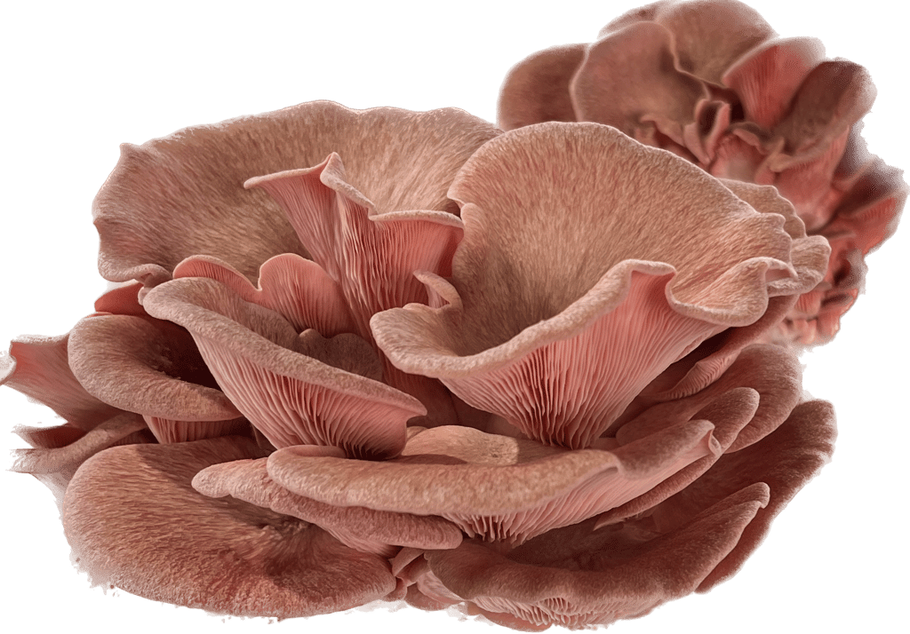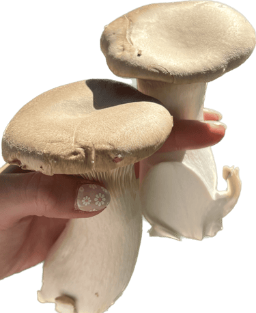 Oyster Mushrooms are named for their smooth, shell-like appearance and can range in color from white or blue-ish gray to pink and even yellow (P. ostreatus, P. ostreatus flamingo, P. citrinopileatus, respectively).