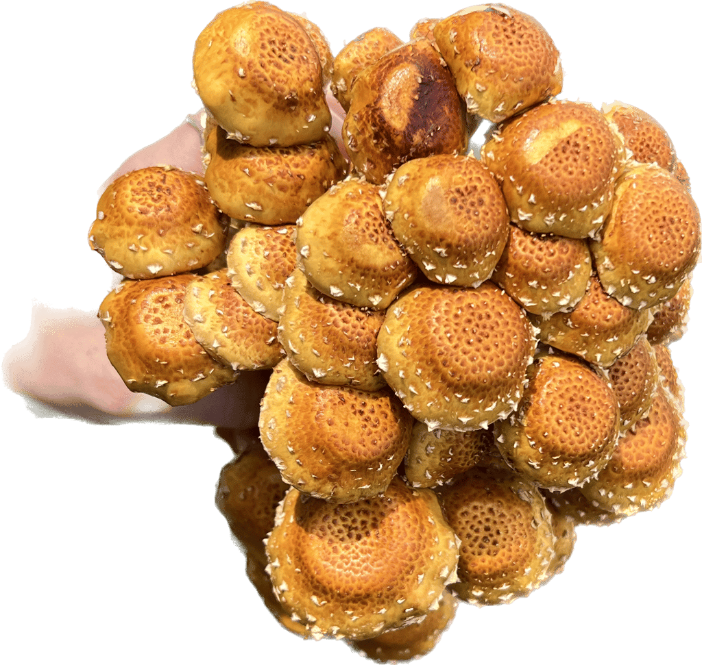 You can expect the caps to be sticky, this is a distinctive trait of all Pholiota species like its cousin the Nameko mushroom.