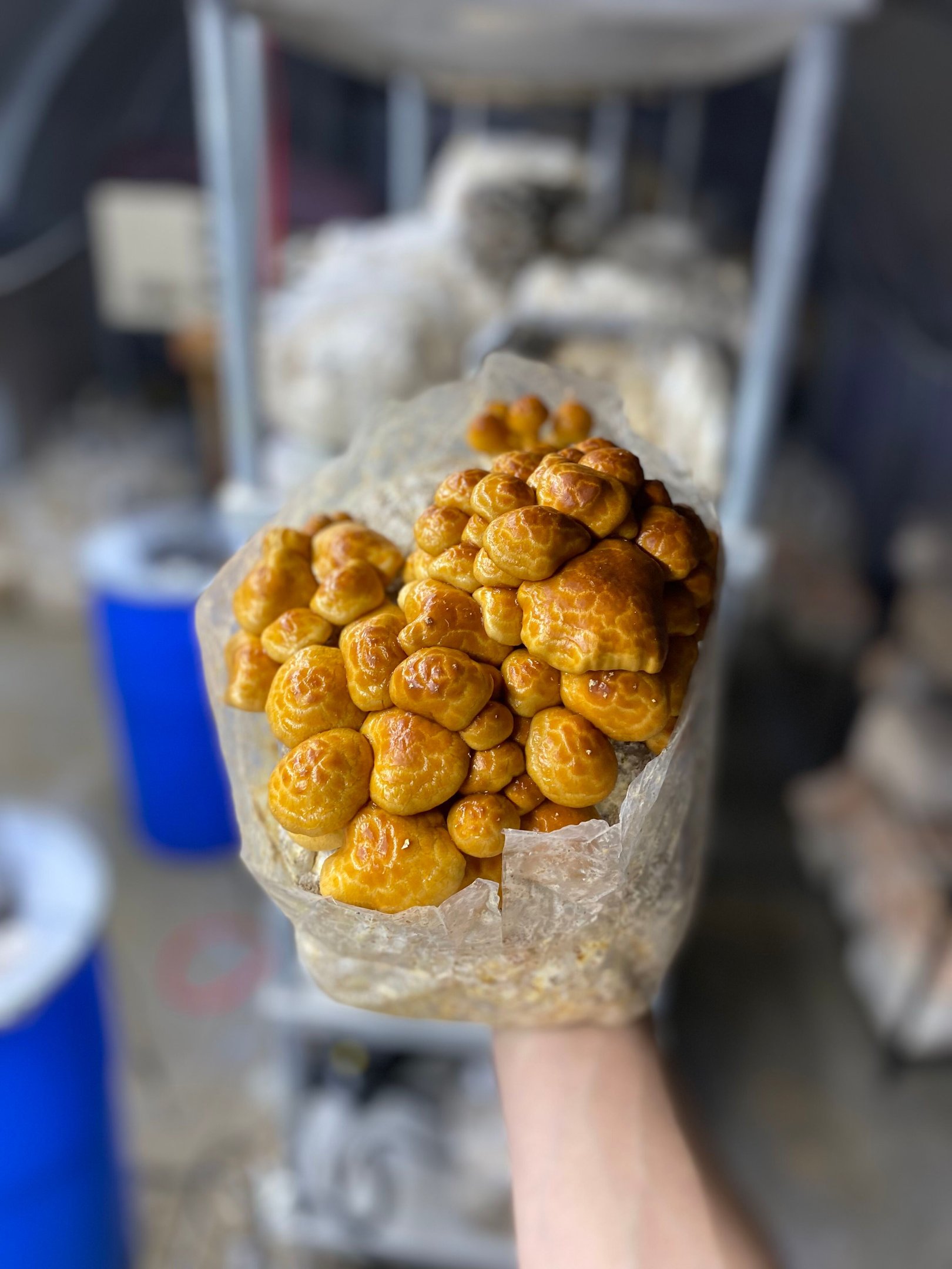 Preferring the cool weather of fall in its native habitat, we only grow this mushroom from late fall to early springs. We are always excited when nameko season comes around!