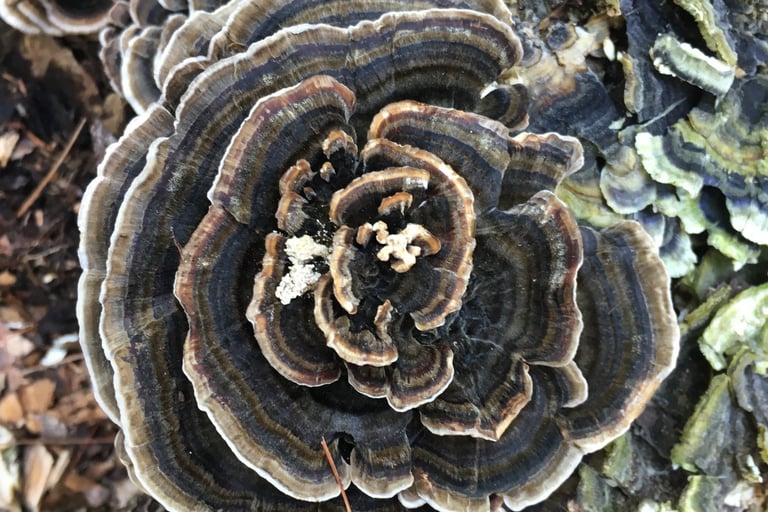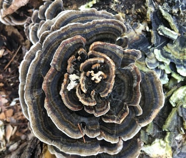 Turkey tail is also a core component of our Forager's Five immune-boosting tincture which includes five of the most potent local medicinal mushrooms: Chaga, Lion's Mane, Maitake, Reishi, and Turkey Tail.
